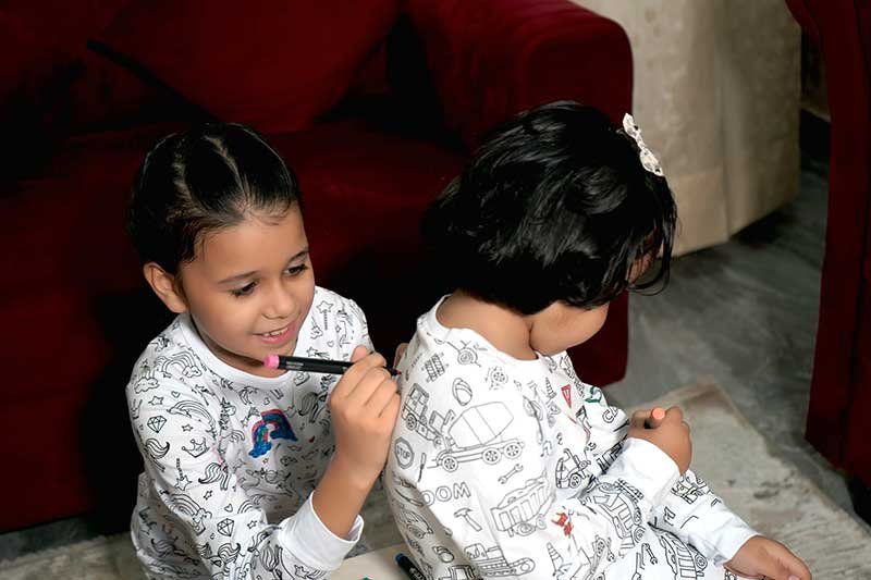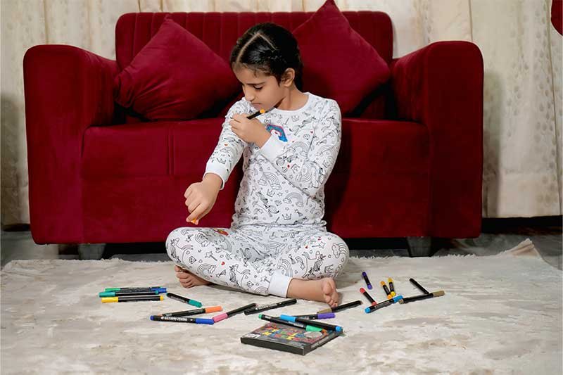 Product Highlights: Includes 1 pair of pajamas + 1 set of fabric markers Soft, breathable, and gentle on sensitive skin Pre-printed with exclusive designs for kids to color Washable & reusable – colors fade after wash for new designs Great for gifts, birthdays, or rainy day activities